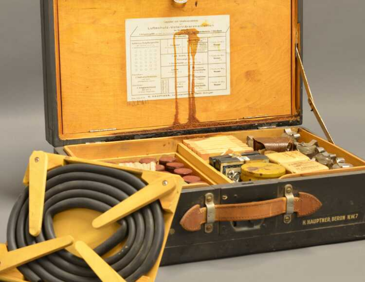 De Tweede Wereldoorlog heeft niet alleen grote invloed op mensen, maar ook op dieren. Ze worden bijvoorbeeld slachtoffer van luchtaanvallen of moeten samen met mensen evacueren. Deze kist van het Duitse merk Hauptner wordt gemaakt om makkelijk te vervoeren en dieren ter plekke te verzorgen. Er zit onder andere verband, zalf en schoon water in. Maar ook een handleiding voor dierenartsen, die uitlegt hoe je een dier kan behandelen na een gifgasaanval.